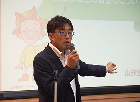 10月2日(木)に令和7年度第1回労務管理実務研修会を開催しました。講師として、山形労働局 雇用環境・均等室長 高須賀左知 氏、山形労働基準監督署 第一方面主任監督官 遠藤賢 氏の両氏をお招きし、「同一労働 同一賃金の取組みについて」「監督指導・相談等から見た労務管理上の留意点について」と題しご講演をいただき、研修を行いました。