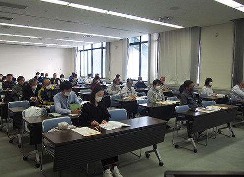 11月27日(木)に「転倒災害防止のための研修会」を開催しました。講師として山形労働基準監督署 安全衛生課長 鈴木保氏、独立行政法人労働者健康安全機構山形産業保健総合支援センター産業保健相談員・理学療法士 烏 和之氏、同 日塔善之 氏の3氏より、転倒災害や冬期型労働災害を防止するためのポイント等についての研修を実施致しました。